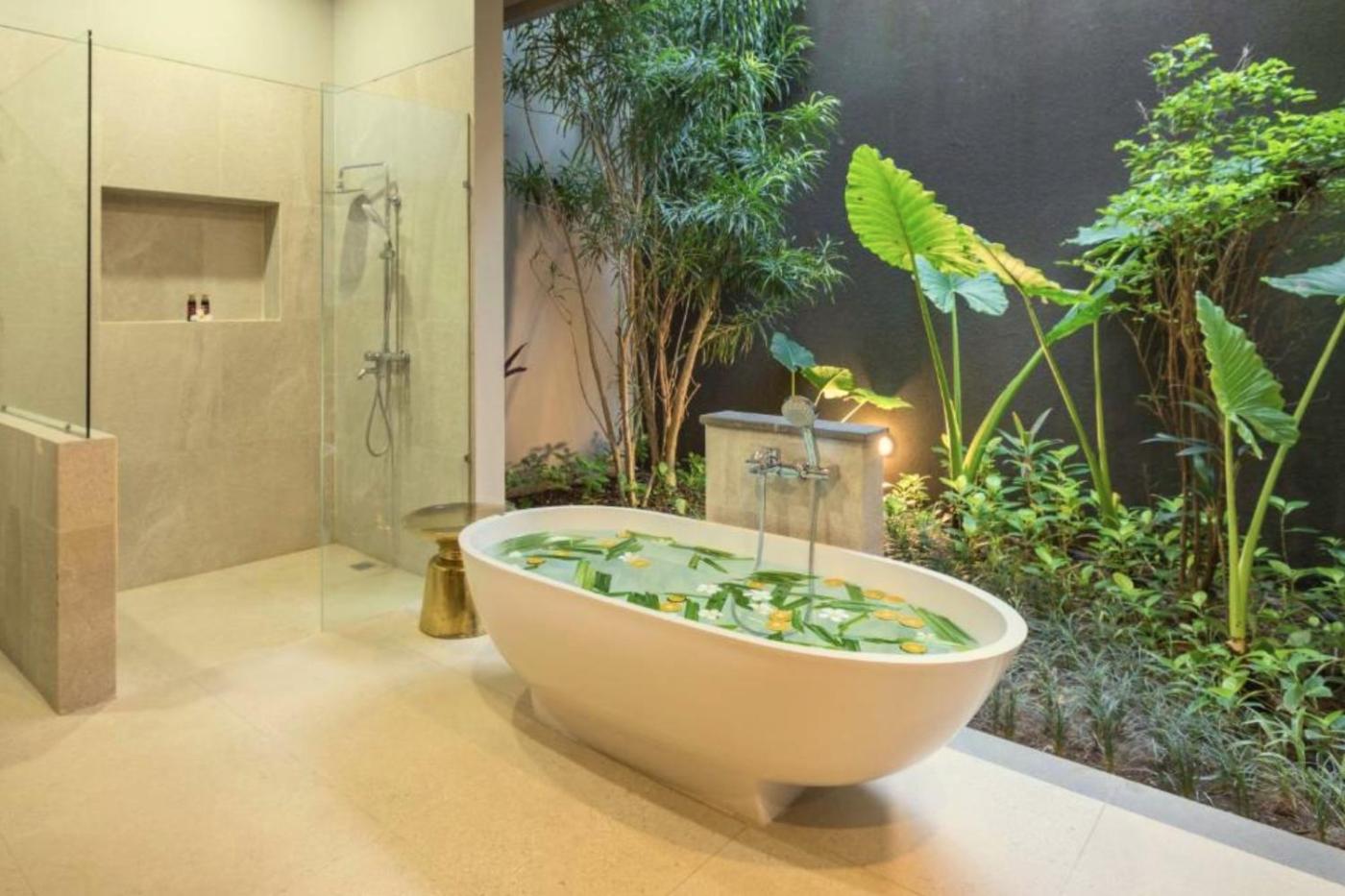 Three-Bedroom Villa. Guests will have a special experience as this villa provides a private pool. This spacious villa is comprised of 1 living room, 3 separate bedrooms and 3 bathrooms with a bath and free toiletries. Meals can be prepared in the kitchen, which is fitted with a refrigerator, kitchenware and an electric kettle. The air-conditioned villa offers a flat-screen TV, a private entrance, a seating area, a dining area as well as garden views. The unit offers 4 beds.