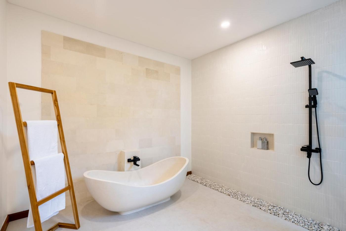 Two-Bedroom Villa. Guests will have a special experience as the villa offers a private pool. Featuring a private entrance, this air-conditioned villa consists of 1 living room, 2 separate bedrooms and 3 bathrooms with a bath and a shower. Meals can be prepared in the well-fitted kitchen, which is equipped with a stovetop, a refrigerator, kitchenware and an oven. The villa provides a seating area, a dining area, a wardrobe, a flat-screen TV with streaming services, as well as pool views. The unit offers 2 beds.