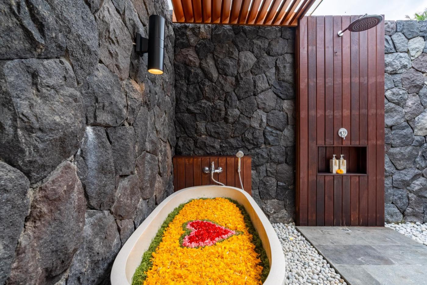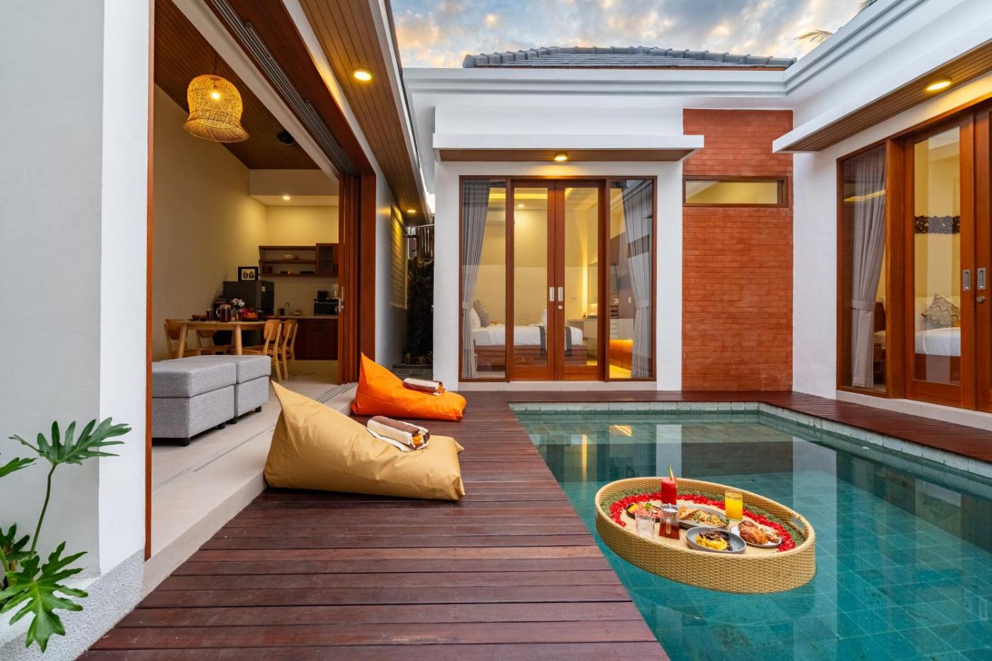 Two-Bedroom Villa. The private pool is the standout feature of this villa. The air-conditioned villa has 2 bedrooms and 2 bathrooms with a bath and a shower. The villas kitchen, which features kitchenware, is available for cooking and storing food. The villa features a seating area, a safe deposit box, a sofa, a tiled floor and a flat-screen TV. The unit has 2 beds.
